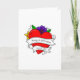 Valentinstag-Karte. Hübsche Blumengrafiken mit Blume und Rose in Gelb, Rot, lila und Orange mit einem Tätograffiti-Stil Handgezeichnetes Herz, das mit Namen, einer persönlichen Nachricht oder einem Datum personalisiert werden kann. Im Inneren der Karte kann auch angepasst werden.