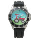 Personalisierter Vintager roter Zuchttraktor Armbanduhr