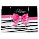 Moderne, trendige, schicke und stilvolle Zebra gestreifte Geschenkideen. Personalisierter individuelle Name weißes schwarzes Zebrastreifen-Muster (wilder Tierdruck) mit einem rosa Diamantenbogen (nicht echte Diamanten) personalisiert mit Ihren Namensgeschenken oder Monogramm Geschenke oder Ihre Initialen.