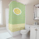Duschvorhang mit Zickzack Streifen aus Aqua und Gelb mit einem unteren Rand von Zickzack in gelb-weiß Streifen. Sie können Ihren Namen einfach hinzufügen, um diesen Zickzack Duschvorhang zu personalisieren.