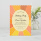 Personalisierte Einladung zu einer Geburtstagsfeier mit einem abstrakten Sonnendesign Der Text und seine Farbe können bearbeitet werden. Wir bieten passende Party- und Schreibwaren an. Diese Vorlage kann auch für andere Anlässe verwendet werden.
