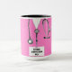 Kreative ärztliche Begrüßung, Geburtstag, Abschluss oder Tasse von Feriengeschenken mit rosa Klinikleber und lustigem Schweizer Armeemesser. So personalisieren Sie Text bearbeiten, um Namen hinzuzufügen.