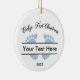 Personalisieren Sie Ihren Weihnachtsbaum mit diesem hübschen Baby's First Christmas Sake Ornament. Ein lustiges Weihnachtsdesign mit einer Baby Füße Silhouette in blau für Jungs. Personalisieren Sie dieses Ornament mit dem Namen des Babys oder jedem Text, den Sie wählen, zusammen mit dem entsprechenden Jahr.