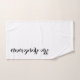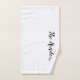Personalisierte Set-Geschenkidee für Familien Bad Handtuch. Stilvolle handgeschriebene Typografie-Vorlage für Familienname, lustiges Zitat oder Sprichwort. Fügen Sie Ihren eigenen Nachnamen hinzu. Stilvolle Schrift-Handschrift Design. Umfasst Waschlappen, Handtuch und Badetuch mit dem Nachnamen in eleganten handgeschriebenen Buchstaben. Schöne gedruckte Geschenke für Geburtstag, Hochzeit, Weihnachten Urlaub und mehr. Schwarz/Weiß oder Sonderfarben. Auch schön für nur verheiratete Paare / frisch gezapfte in neues Haus. Die trendige Badezimmerdekoration für ihn und sie.