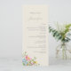 Feiern Sie Ihre Hochzeit im Frühjahr oder im Sommer mit diesem eleganten Hochzeitsmenü der Wildblume mit personalisierten Gästebamen an der Spitze. Ein weicher cremefarbener Hintergrund Set die Bühne für romantische Kalligraphie und moderne Serif-Schriftart, während ein blühender Blumenstrauß aus rosa, gelben und blauen Wildblumen eine frische saisonale Touch in den Sockel bringt. Ideal für Hochzeiten im Garten, Empfänge im Freien oder Feste im Landhausstil. Editieren Sie einfach die Menüdetails und den Gastnamen, um das passende Ereignis zu erhalten.