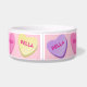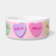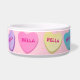 Dieser Valentinstag zeigt Ihrem Hund, wie viel Sie sie den ganzen Monat lang Liebe haben. Nostalgische Süßwarenherzen in Rosa, Grün, lila, Gelb und Blau umkreisen diese Schüssel und jedes Herz ist mit dem Namen Ihres Hundes abgestimmt.