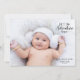 Moderne Geburtsankündigung für Fotos. Verwenden Sie diese Vorlage, um Ihr eigenes benutzerdefiniertes Foto auf der Kartenvorderseite hinzuzufügen und Namen, Datum und Geburtsdaten hinzuzufügen. Script Satz: lass das Abenteuer beginnen".