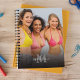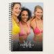 Moderner 2025-Planer mit einem gedruckten Foto für den Umstieg auf Ihr eigenes, einem schwarzen Overlay unten, Ihrem Initial und Namen.