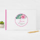 Dieses personalisierte Gästebuch mit Hibiskus-Blume und Monstera-Palmen-Blätter in kräftigen Rosa- und Grüntönen. Das Wort "Liebe" ist Set in eleganter Schriftzeichen. Verwenden Sie die Vorlagenfelder, um Ihre individuelle Namen und das Hochzeitstermin zu überprüfen. Besuchen Sie www.zazzle.com/dotellabelle , um das komplette Blumenthema zu sehen. Einzigartige Aquarellkunst und Design von Victoria Grigaliunas, Museo Cantonale d'Arte