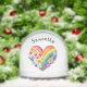 Dieser Schneeglobus zeigt ein florales Regenbogenherz-Design im farbenfrohen Wasserfarben-Stil, personalisiert mit einem Namen darüber. Passen Sie ihn mit Ihrer eigenen Nachricht auf der Rückseite an, um ihn zu einem individuellen Erinnerungs-Geschenk für jemanden Besonderes zu machen.