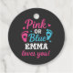 Feiern Sie Ihren besonderen Augenblick mit diesem personalisierten Gender Enthüllungsdesign! Dieses niedliche Design mit spielerischen Fußabdrücken in Rosa und Blau mit dem Satz "Pink or Blue, [Name] Lieben you!" eignet sich perfekt für Babyduschen, Schwangerschaftsankündigungen, Einladungen, Kleidung und Geschenke.