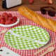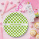 Green Checked Muster. Retro zeitgenössisches Schachbrettmuster Karo Design in Frühling Grün und Weiß. Kann personalisiert sein. Von Kierkegaard Design Studio.