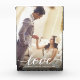 Passen Sie dieses Foto mit Ihrem Lieblings-Hochzeitsfoto vom besten Tag aller Zeiten an. Die Liebe ist elegant und klassisch mit einem modernen handgeschriebenen Stil. Personalisieren Sie mit Ihren Namen und Hochzeitstermin. Ein perfekter Sake.