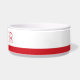 Rot gestreifte, personalisierte Haustierschale für das Futter oder Wasser Ihres Hundes oder der Katze mit einem modernen Schriftart und Platz, um den Namen Ihres Haustieres einzugeben. Klicken Sie auf 'Weiter', um die Stripfarbe oder den Schriftart zu ändern.