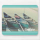 Personalisierte Kanumaus. Das Design zeigt drei Kanus und hat Platz für den Namen des Kanufahrers. Ein großartiges Geburtstag oder Weihnachtsgeschenk für einen Wassersportler. Bild aufgenommen in Bude, Cornwall, Großbritannien.