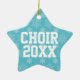 Sternförmige Weihnachtsmusik-Baumverzierung hat einen Hintergrund des Blaus mit weißen Schneeflocken, und CHOR zitieren und Jahr auf Front, die mit dem Entwurfswerkzeug veränderbar ist. Fügen Sie auch einen individuellen Namen auf der Rückseite hinzu. Große Feiertagsmusikgeschenke für jedes Mitglied Ihres Chores, des Showchores, des Kirchenchores oder der Ensemblegruppe.