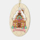 Ein festliches Lebkuchenhaus schmückt dieses niedliche Weihnachtsschmuck. Personalisieren Sie dieses Lebkuchenschmuck, indem Sie den Text ändern. Das Design stammt aus der Originalkunst.