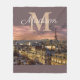 Personalisierte Monogramm-Decke mit einem Skyline-Foto von Paris, Frankreich und dem Eiffelturm im Hintergrund. Geben Sie Ihren Initial und Namen ein.