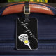 Personalisiertes Schwarz-Weiß-Lacrosse-Gepäcksack-Tag mit einer einfachen niedlichen Lacrosse-Stick-Grafik und individuelle Name oder Text in einem femininen gürtelig und modernen hübschen Drehbuch-Schriftart Monogramm. Jegliches Lacrosse Team- oder Clubmitglied Liebe den Spaß und die niedliche Gestaltung dieses Lacrosse Themes, das es seinen Taschen ermöglicht, sich für Reisen und Wettkämpfe zu profilieren.