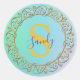 Personalisiertes Monogramm Mandala Gold und Türkis Runder Aufkleber
