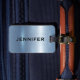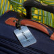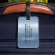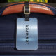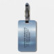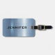 Entwerfen Sie ein einzigartiges Gepäckanhänger mit Ihrem Namen und Kontaktinformationen auf einem glänzenden metallisch blauen Hintergrund. Stell dich von der Menge ab und mache eine Aussage mit deinem personalisierten Tag.