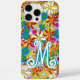 Farbenfrohe florale Muster gepaart mit und mit einem Personalisierten, trendigen Funky Oversized Big Monogram. Blüte der Wildblume, boho bohemian chic floral, volksbohemian bohemian floral, folksy botanische florale, elegante folksy blumenmuster, kulturbelebende botanische muster, große tausendjährige Rokoko chic floral, bunte botanische, Blumengarten mit personalisiertem Namen Rosa-Gelb-Orange,