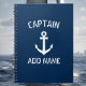 Personalisiertes Boot Kapitän nautischen Anker Notebook. Kundenspezifische Büroausstattung mit maritimen Themen. Fügen Sie Ihren eigenen Namen oder Ihre eigene Monogramm hinzu. Vintage Typografie-Vorlage mit Schiffsanker. Navy Blau und Weiß oder benutzerdefinierte Hintergrundfarbe. Niedliche Geschenkidee für Vater, Onkel, Großvater etc. Erstellen Sie Ihr eigenes Logbuch, Tagebuch, Tagebuch, Tagebuch, Tagesbuch, Tagesordnung usw. Segelspenden und Bootsverleih.