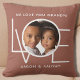 Diese We Liebe You Grandpa Foto Kissen ist mit dem Wort LIEBE in weißer Typografie auf einem braunen Hintergrund dekoriert. Einfach mit Ihrem Foto und Namen anpassbar. Perfekt als Großvaters Geschenk.