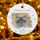 Dieses "immer in unseren Herzen"-Ornament zeichnet sich durch ein personalisiertes Foto und einen Namen mit Todesdatum aus.