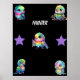 Rainbow-Bird's & Stars Poster. Personalisierter Name.