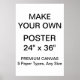 Maßgeschneiderte, personalisierte 24" x 36" PREMIUM LEINWAND POSTER Blank Vorlage. Entwerfen, erschaffen, eigene machen. Ihr Foto, Bild, Text, Logo, Grafiken in einem farbigen Vollfarbdruck. PREMIUM LEINWAND wird aus einem additiv-freien Baumwolle-Poly-Gemisch hergestellt, der 75 Jahre verblasst und für Fotografie oder Kunstwerke empfohlen wird. Es verfügt über eine spezielle, farbenrezeptive Beschichtung, die die Druckoberfläche vor dem Rissen beim Stretchtieren schützt. Das Hotel ist ideal für Unis- und Teenagerzimmer, Weihnachts- und Geburtstagsgeschenke.