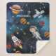 Feiern Sie alles im Weltraum mit dieser Sherpa-Decke, die Sie einen Namen hinzufügen können, um es persönlich zu machen. Karo die anderen Elemente dieser Kollektion unten heraus, wie den Rucksack, Tischläufer und Serviertablett, um diese Raumforschungs-Nervendecke zu ergänzen. Es zeigt die Weltraumaktivitäten und Ikonen wie Sterne, Raumrakete, Astronaut, Mond, Satellit und andere Systemelemente des Planeten. Fügen Sie einen Namen hinzu, indem Sie auf den Link "Personalisieren" oben klicken, oder löschen Sie den Platzhalter-Namen, um daraus ein schlichtes Weltraummuster zu machen, Sherpa-Decken