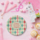 Genießen Sie einen lustigen Retro-Look, der an den Zirkus erinnert, mit personalisierten Party-Tellern in einem Vintagen Harlequin-Design in den Farbtönen aquamarin, Minze, Rot, Rosa und Beige. Geben Sie den Namen Ihres Party in die Designvorlage ein. Sie können den Wortlaut, die Schriftart, die Größe des Schriftartes und die Farbe des Schriftartes ändern, wenn Sie möchten. Diese Platte eignet sich für viele Arten von Party und Ansammlungen. Wenn Sie die Platte ohne Text bevorzugen, können Sie den Text und den Monogramm-Rahmen löschen. In diesem Design sind passende Servietten erhältlich.