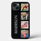 Erstellen Sie Ihre eigene personalisierte 4-Foto-Collage, Telefongehäuse mit Ihren individuellen Bildern auf einem einfachen, modernen schwarzen Hintergrund. Die Gehäuseseite zeigt auch Ihren Namen an. Fügen Sie Ihre Lieblings-Fotos, Designs oder Kunstwerke, um etwas wirklich Einzigartiges zu schaffen.