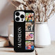 Erstellen Sie Ihre eigene personalisierte 4-Foto-Collage, Telefongehäuse mit Ihren individuellen Bildern auf einem einfachen, modernen schwarzen Hintergrund. Die Gehäuseseite zeigt auch Ihren Namen an. Fügen Sie Ihre Lieblings-Fotos, Designs oder Kunstwerke, um etwas wirklich Einzigartiges zu schaffen.