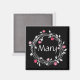 Personalized Monogrammed Black and White Floral Wreath Magnet