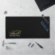 Elegante elegante Premium-Look-Schreibtischmatte, personalisierbar mit Monogramm, Anfangsbuchstaben und Namen, geeignet für einen sauberen, monochromen, männlich schwarzen Hintergrund, elegantes goldfarbenes Kalligraphieskript handgeschriebene Anfangsbuchstaben und weiße Serif Typografie für den Namen. Schön und zeitlos, für Sie oder als ein nachdenklich nützliches elektronisches Zubehör für ihn. Ein bester Freund, ein Mitarbeiter, ein Chef oder jemand aus der Familie, ein Vater, ein Bruder, sogar ein Großvater werden sich sehr freuen, dies zu erhalten. Für Zuhause, Zuhause oder Geschäftsbüro berufliche Büroräume. für einen Mann. Sehr erschwinglich, ein individuelles Geschenk unter 40 Dollar, um Laptop, Computer, Tastatur und Maus geschützt und organisiert behalten. Geeignet für viele Anlässe und Feiern, wie Geburtstag, Vatertag, Weihnachten, Abschluss, Ruhestand, Jahrestage oder einfach nur, um ihn ein wenig überraschen, ohne besondere Anlass.