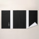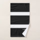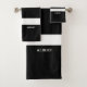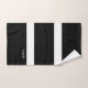 Personalisiertes Set mit schwarz-weißem Badehandtuch. Schwarz mit Namensfeld im Blocktext unter einem weißen und einem grauen Streifen.