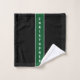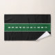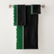 Stilvolles Black Bath Handtuch Set mit zwei dünnen weißen Streifen und einem breiten, dunkelgrünen Streifen in der Mitte und individuelle Name darauf.