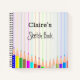 Personalisiertes Skizzenbuch mit Namen und farbenfrohen Stiften. Die Seiten können leer oder ausgekleidet sein. Notebooks sind in drei Größen erhältlich.