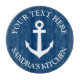 Personalisierte nautische Marine blau und weiß Anker Ikone rund Glas Schneidebrett. Niedliches Küchenzubehör für Freunde und Familie. Fun Dinner Party Geschenkidee für Koch Kochen Seemann Ehefrau, Mama, Papa, Mutter, Schwester, Bruder, Tante, Oma, Ehemann, Ehefrau etc. Einzigartige Party Vorräte für Wiedersehen oder Ansammlung.