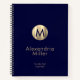 Moderne Listen-Zeitschrift mit elegantem mit Monogramm Design auf klassisch marineblau-blauem Hintergrund. Individuelle Monogramm-Initial und Name in stilvollem, einfachem Schriftart mit einem gratis gebürsteten Metallic-Monogramm-Medaillon. Dieses personalisierte Listenjournal ist mit einem individuelle Name und Monogramm, das in der modernen Typografie zunächst auf der Vorderseite gezeigt wurde, mit benutzerdefiniertem Text auf der Vorderseite gestaltet; das in der Checkliste enthaltene Papier. Sie können den Text anpassen, indem Sie die angegebenen Felder verwenden, oder mit der Schaltfläche "Nachricht" Kontakt mit dem Designer aufnehmen, um Hilfe zu erhalten. So erstellen Sie Ihr eigenes personalisiertes tägliches Listenjournal notebook: 1. Wählen Sie diese Vorlage aus. 2. Ersetzen Sie den Text. 3. Überprüfen Sie Ihr Design auf Größe und Platzierung. Eine moderne minimalistische To-Do-List-Zeitschrift für Zuhause-Büroarbeit oder Schule oder ein nachdenkliches Geschenk für den Veranstalter in Ihrem Leben.