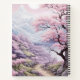 This is a cherry blossom scene with soft pink and lavender trees. The mix of spring colors and cool mountain tones gives the design a calm, nature-inspired feel.