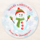 Personalize Christmas Snowman with Family Name Runder Pappuntersetzer