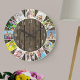Personalized 12 Photo Collage Dark Wood Round Große Wanduhr