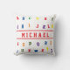 Child's name is displayed in bright, red letters across the center of design. Reverse features a bright red background to the initial you supply displayed in white.
