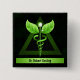 © Sunny Mars Designs - Personalized Dark Green Caduceus Alternative Medicine Symbol Square Pin-Back Badge - Unique medical or holistic square pinback button, badge or pin with modified Caduceus symbol with leaves and vines instead of wings and serpents. Concept for alternative medicine or a combined use of alternative medicine and conventional medical practices.