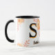 Start your day with a touch of style and warmth with this mug made just for you. This mug features a design that combines your first letter prominently, decorated with warm autumn colors and delicate chrysanthemums, with space to add your name in full.