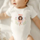 This sweet personalized baby bodysuit features a watercolor fairy in a pink dress surrounded by flowers brings a touch of whimsy and wonder to your little one’s wardrobe. It’s perfect for everyday wear, newborn photos or as a thoughtful baby shower gift. Add your baby’s name for a personalized keepsake full of love, warmth and fairytale charm!