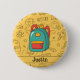 Gear up for a fantastic new school year with this cheerful and customizable Buttons! Featuring a vibrant blue backpack surrounded by playful black-and-white school doodles like books, a globe, and a school bus on a bright yellow background. This fun design is perfect for organizing all your notes and assignments. Easily add your name, grade, or a special message to make this Buttons uniquely yours. An exciting and personalized accessory for the 'Back To School' season!